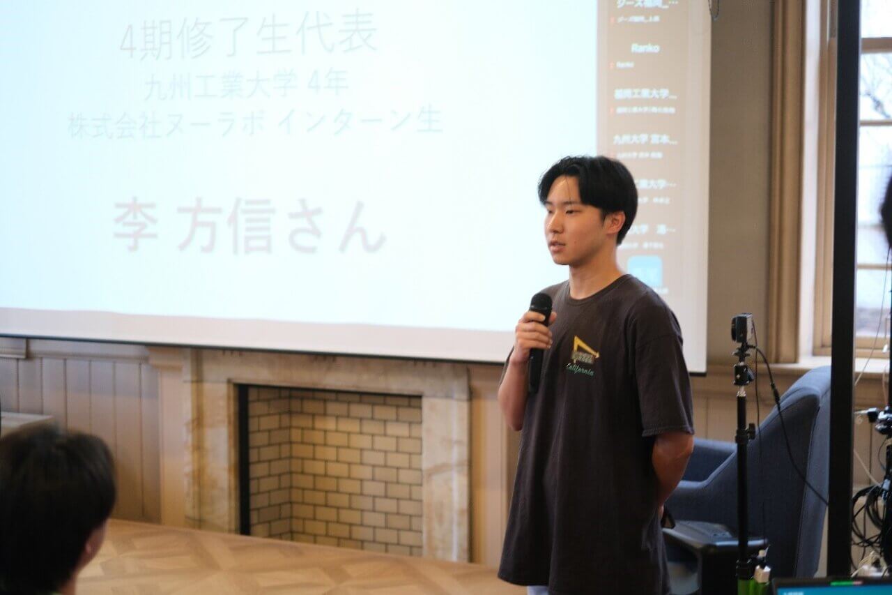 式では、昨年度プログラムを修了した九州工業大学の李 方信さんから、