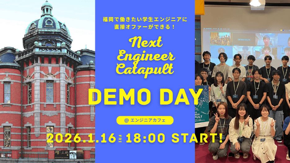 【1/16開催】福岡で働きたい学生エンジニアに直接オファーができる!デジタル人材育成プログラム「NEXT ENGINEER CATAPULT」DEMO DAY(最終課題発表)開催決定!