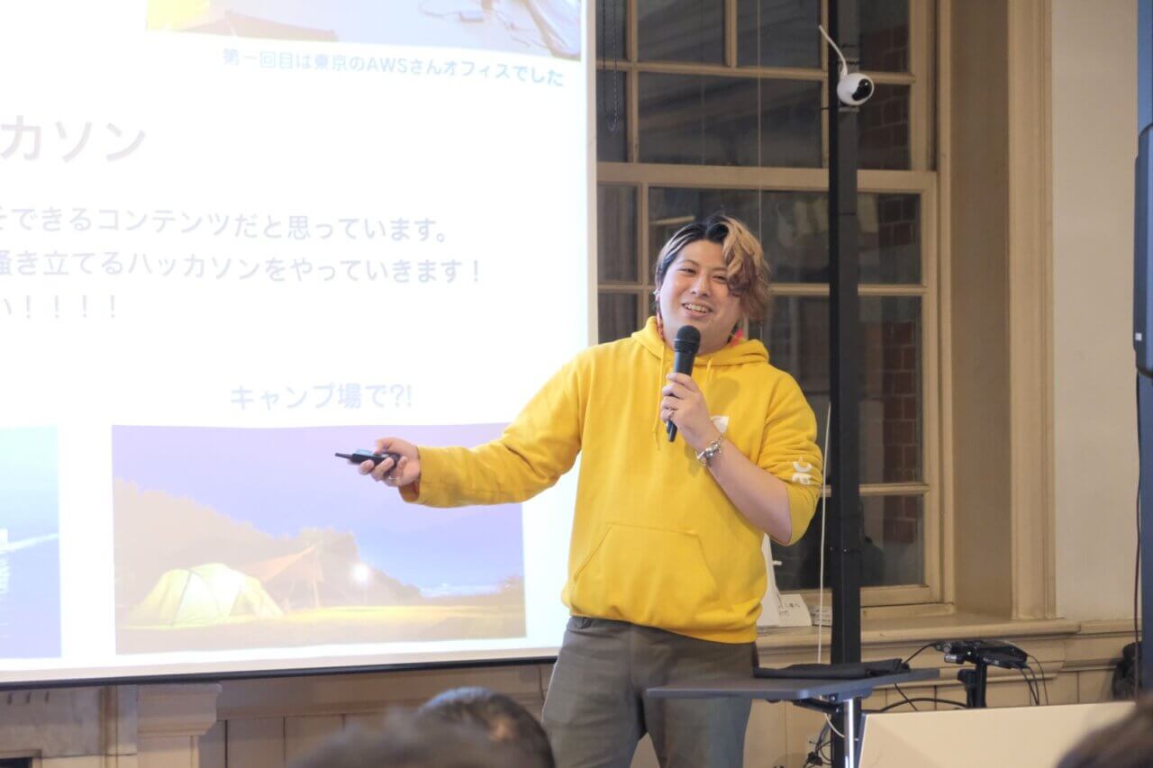 代表取締役の湯舟武龍氏は、「学生が輝く環境を創り、今以上に楽しめる世界にする」というビジョンについて、今年度から対象を“学生”に限定せず、“Hacker”と呼ぶ技術を愛する人たちへと活動の幅を広げていく方針を紹介しました。新たな取り組みとして、学生サークルや団体が主催するハッカソンの運営支援やスポンサー活動を開始し、社会人向けのハッカソンやコミュニティ活動にも力を入れています。「今後は、水族館や船上など、開発空間にこだわったハッカソンを多くやっていきたい」と、展望を語りました。