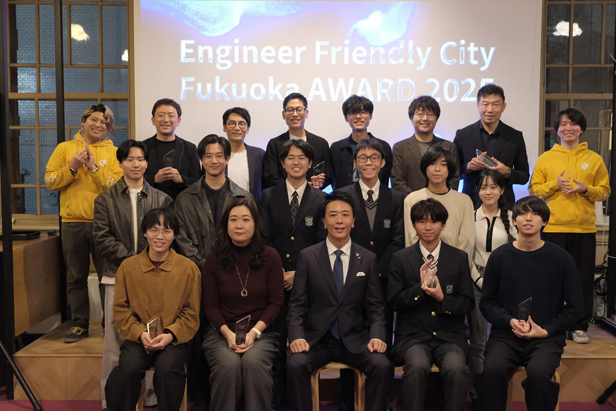 「エンジニアが集まる、活躍する、成長する街、福岡」の実現を目指している「エンジニアフレンドリーシティ福岡」。日々知識や技術の習得、技能向上に取り組み、企業や社会に価値をもたらす福岡のエンジニアの活動の活発化を目的としています。併せて、その活動を支える環境の向上を図っています。その表彰イベントであるEngineer Friendly City Fukuoka AWARD2025が、2025年12月5日(金)にエンジニアカフェで開催されました。