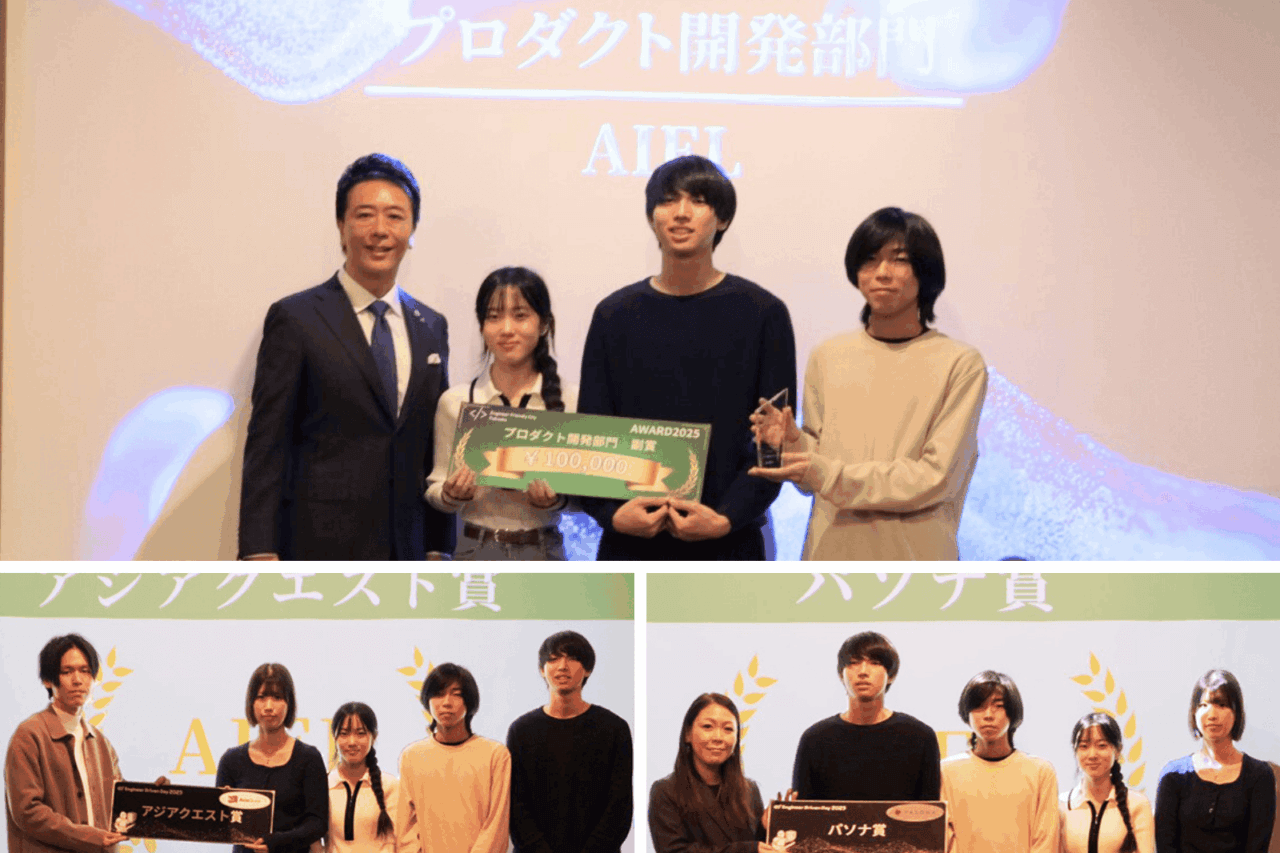 読唇術を活用し、声を出さずに口の動きだけでメッセージを伝えられる通話アプリ「Nois」を開発した「AIEL」。唇の動きを正確に読み取るための精度向上や日本語特有の発音パターンの分析といった改善への熱意や高い技術力が評価され、プロダクト開発部門に加えパソナ賞とアジアクエスト賞を受賞しました。
