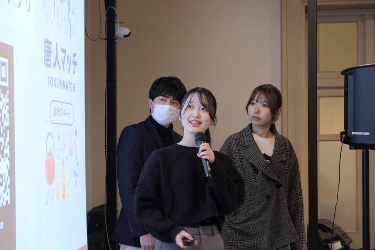 「I'm-tojin」は、自分に合った店舗が分かる診断アプリ「唐人マッチ」を開発しました。商店街は店舗情報が分かりづらく初めて来た人が入りにくいことや、若い世代への認知不足、PayPayドーム来訪者を商店街へ十分に誘導できていないといった課題に着目。若者にも親しみやすい「楽しく知って、気軽に来られる」体験づくりを目指しました。